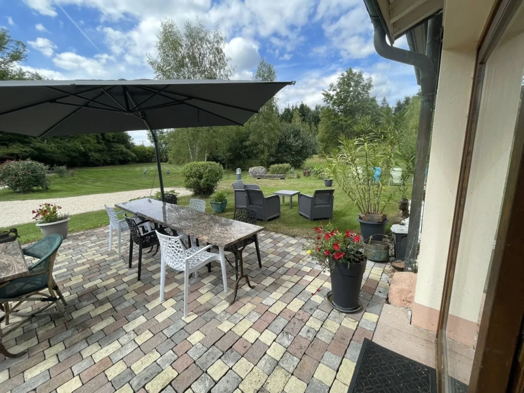 La chambre Terrasse vous offre un accès direct à une terrasse privative donnant sur notre magnifique parc arboré. Depuis cet espace unique, vous aurez peut-être la chance d’apercevoir quelques animaux sauvages venus de la forêt voisine.